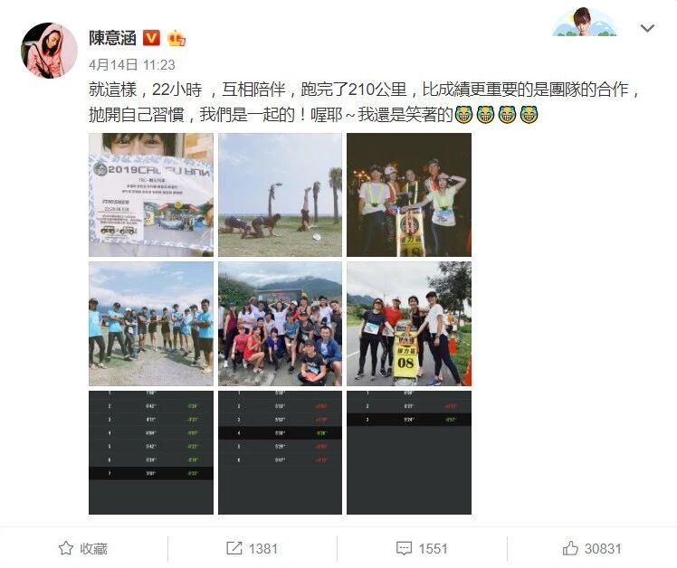 刚刚生完宝宝两个月,就在微博上分享了自己与团队合作跨夜接力的成绩: