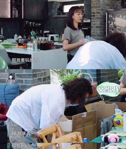 老公许富翔则包揽下所有家务,继续有条不紊地收拾。