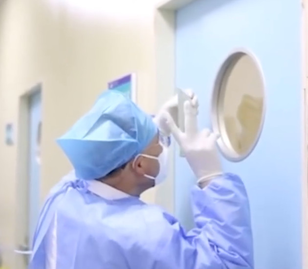 医生爸爸对着玻璃,像隔离间里的医生儿子打气,他们是平凡的父子,也是中国的英雄!