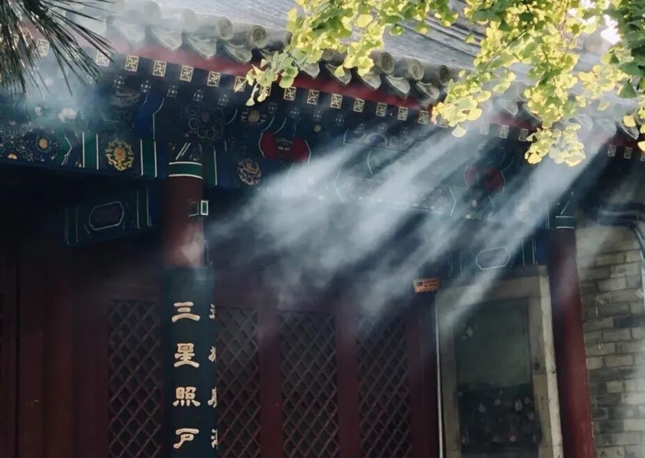 阳光斜着照进院子,与香火可呈现出丁达尔效应,建议在阳光明媚的午后,带着孩子来就可以看见。