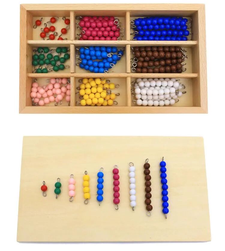 2.任意说出一个数字,让孩子按照珠子的组合来表示。比如:数字10,就可以用两串5个的珠子来组合。
