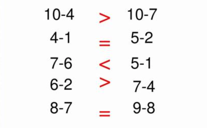 家长可以在此时代入纯粹的数字试题来帮助孩子提升,可以设计进阶。比如:起步可以1~5的数字进行比较逐渐增长。